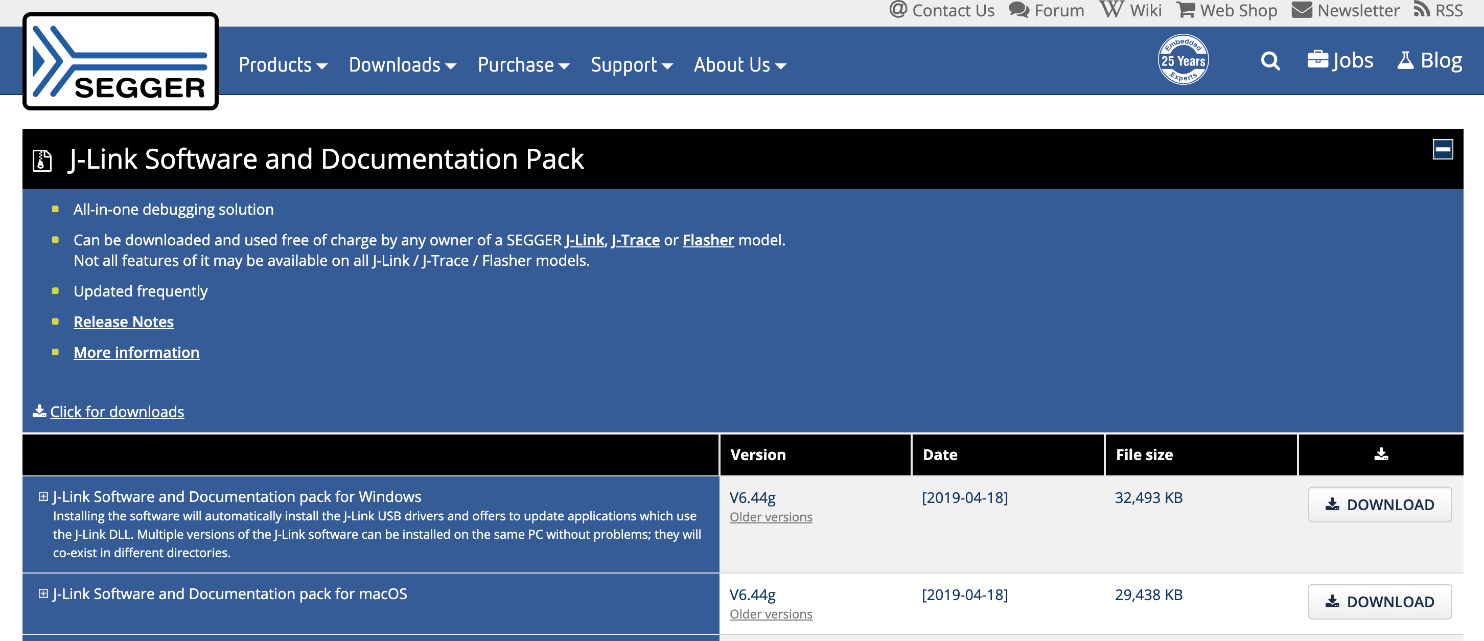 Link to download SEGGER J-Link Software